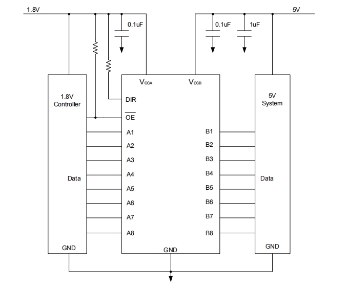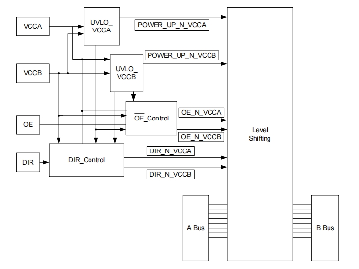 - 控制输入(DIR和OE)VIH和VIL电平以VCCA为基准